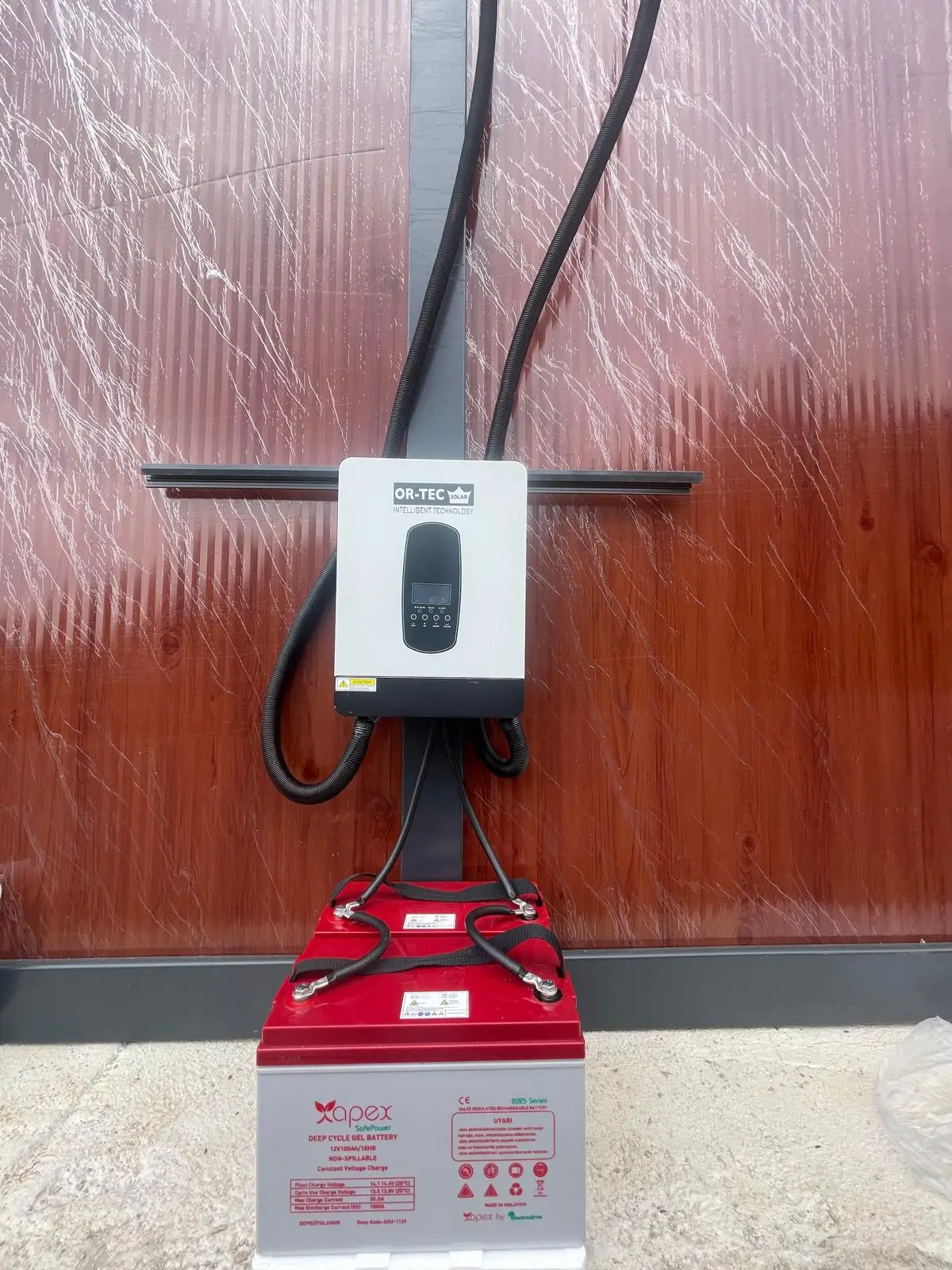 Projede toplam 1,2 kWp gücünde 2 adet 600 Watt monokristal güneş paneli kullanılmıştır. Sistemde 3,2 kWe MPPT hibrit inverter yerine bu proje özelinde 2,2 kWe MPPT hibrit inverter tercih edilmiştir. Enerji depolama ünitesi olarak 2,4 kWh kapasiteli batarya ile kompakt, yüksek verimli bir yapı oluşturulmuştur.