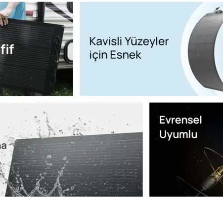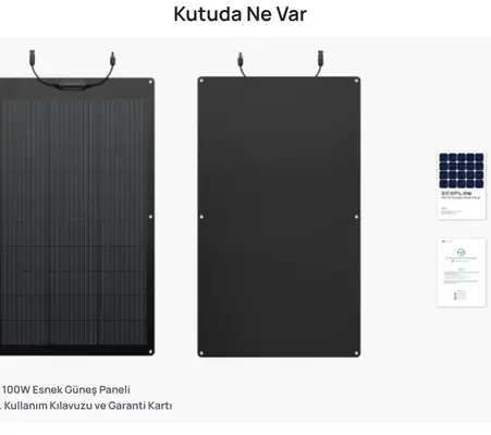 EcoFlow 100W Esnek Güneş Paneli; karavan ve çekme karavan çatısına kavisli yüzey uyumlu solar panel kurmak isteyen kullanıcılar, kamyonet kasası veya araç çatısına hafif solar sistem eklemek isteyen off-road ve overlanding kullanıcıları, tekne ve yat güverte solar kurulumu planlayan denizciler, çadır ve tente gibi hafif yapılara solar panel monte etmek isteyen kamp kullanıcıları ve mevcut 48V enerji sistemine veya EcoFlow güç istasyonuna ek solar kapasite eklemek isteyen kullanıcılar için geleneksel katı panellerin giremediği her yüzeye güneş enerjisi taşıyan yenilikçi ve hafif bir solar çözümdür. %23 monokristal verimlilik, IP68 koruma, 2.3kg ultra hafif esnek gövde, bypass diyot, MPPT optimizasyonu ve evrensel solar kablo dahil sunumuyla EcoFlow 100W Esnek Panel; esnek güneş paneli kategorisinin en güvenilir ve en verimli tercihlerinden biri olmaktadır.