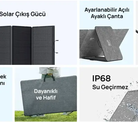 EcoFlow 400W Taşınabilir Güneş Paneli; EcoFlow DELTA veya RIVER serisi güç istasyonu kullanıcıları, karavan ve kamp yaşamında güneş enerjisiyle bağımsız enerji üretmek isteyen outdoor meraklıları, IP68 dayanıklılık ve ETFE koruma gerektiren zorlu dış mekan koşullarında güneş enerjisi kullananlar, hafif ve kompakt katlanır panel arayan seyahat ve macera tutkunları ve off-grid mülklerinde taşınabilir yüksek güçlü güneş enerjisi çözümü arayan kullanıcılar için EcoFlow'un taşınabilir güneş enerjisi serisinin en güçlü ve en verimli modelidir. %22.6 monokristal verimlilik, IP68 koruma, ETFE film, 16kg hafif katlanır tasarım, kickstand kılıf ve EcoFlow ekosistemiyle tam entegrasyonuyla EcoFlow 400W; taşınabilir güneş enerjisi kategorisinde üst segment tercihin adresi olmaktadır.