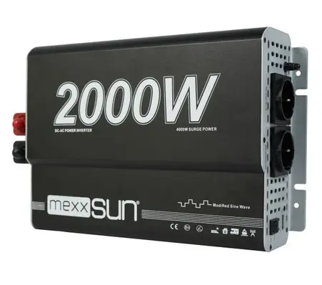 Mexxsun 12V 2000W Modifiye Sinüs İnverter, 12V akü sistemlerinden aldığı DC enerjiyi 220-240V AC şehir elektriğine çevirerek yüksek güçlü cihazlarınızı güvenle çalıştırmanızı sağlar. Güçlü performansı sayesinde karavan, bağ evi, tekne ve güneş enerji sistemleri için ideal bir tercihtir.
